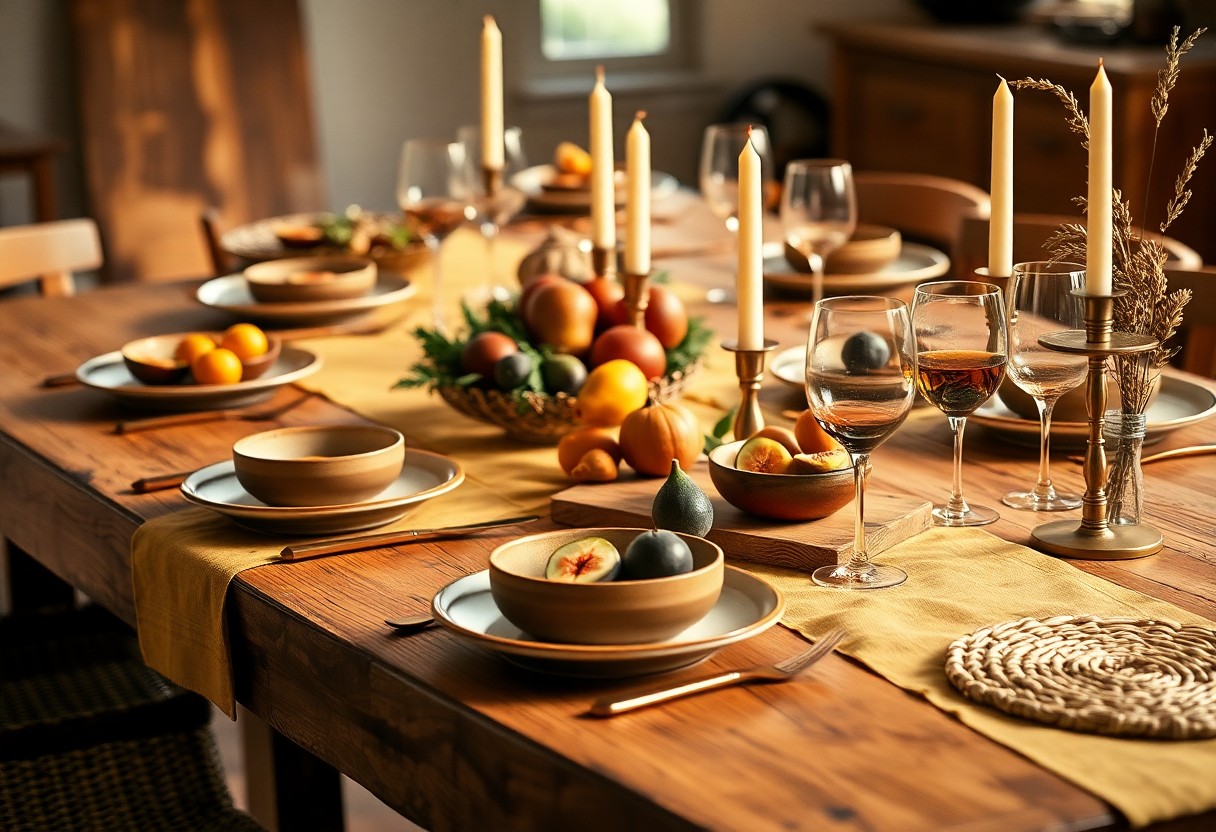 Achte auf eine begrenzte Farbpalette (maximal drei Hauptfarben) und kombiniere matte Keramik mit glänzenden Akzenten, damit du Tiefe erzeugst; mixe Leinenservietten in Senf- oder Terrakottatönen mit dunkelgrünen Gläsern, um eine ausgewogene, edle Optik ohne Überladung zu erzielen.