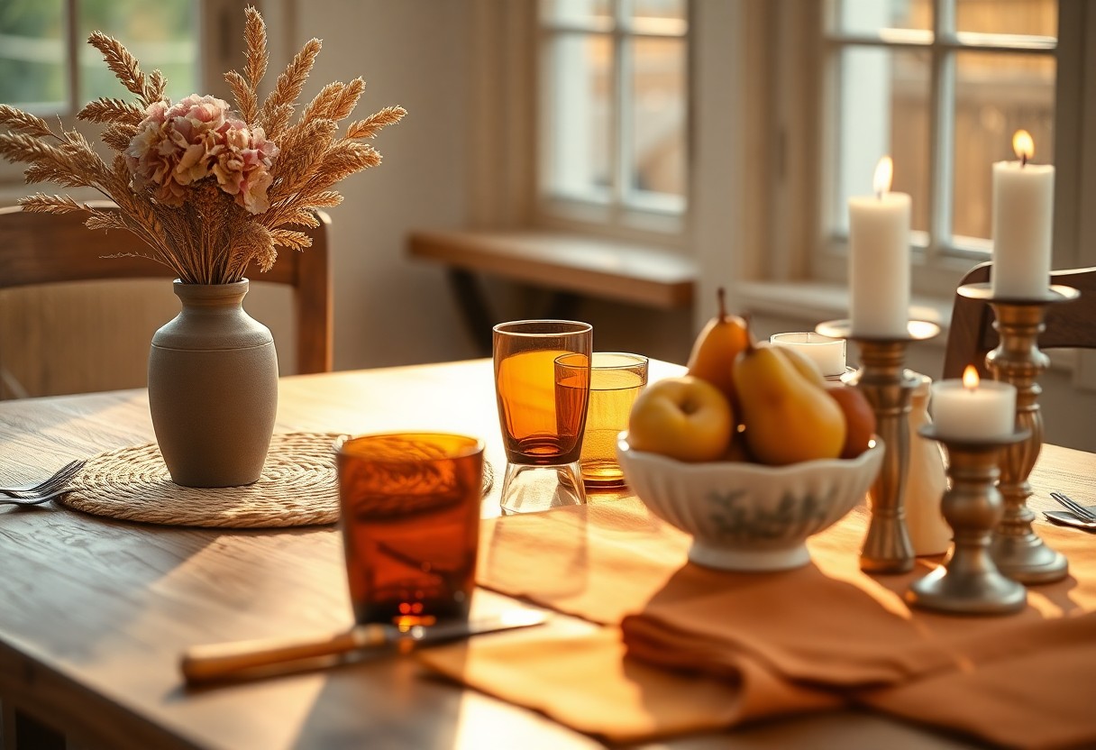 Setze auf warme Töne, natürliche Texturen und dezente Highlights, damit du eine einladende, spätsommerliche Tafel gestaltest, die Gäste sofort willkommen heißt.
