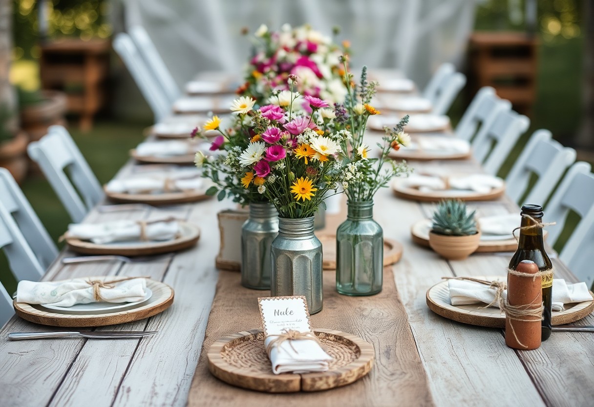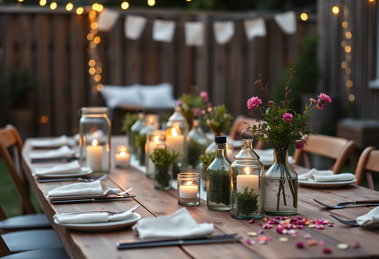 Probier natürliche Materialien wie Zweige, Muscheln und getrocknete Blüten, um rustikale Dekoelemente zu schaffen; du schonst Ressourcen und kreierst individuelle Akzente für dein Sommerfest.