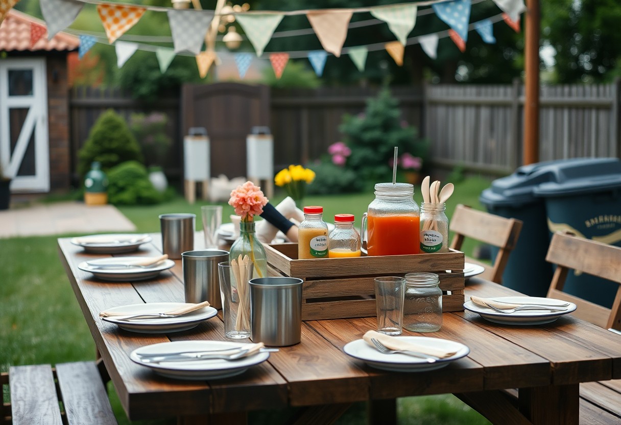 Nutze Materialien wie Papierstrohhalme, Baumwollgirlanden und kompostierbare Teller, sodass du nach dem Fest kaum Restmüll hast und die Umweltbelastung sinkt.